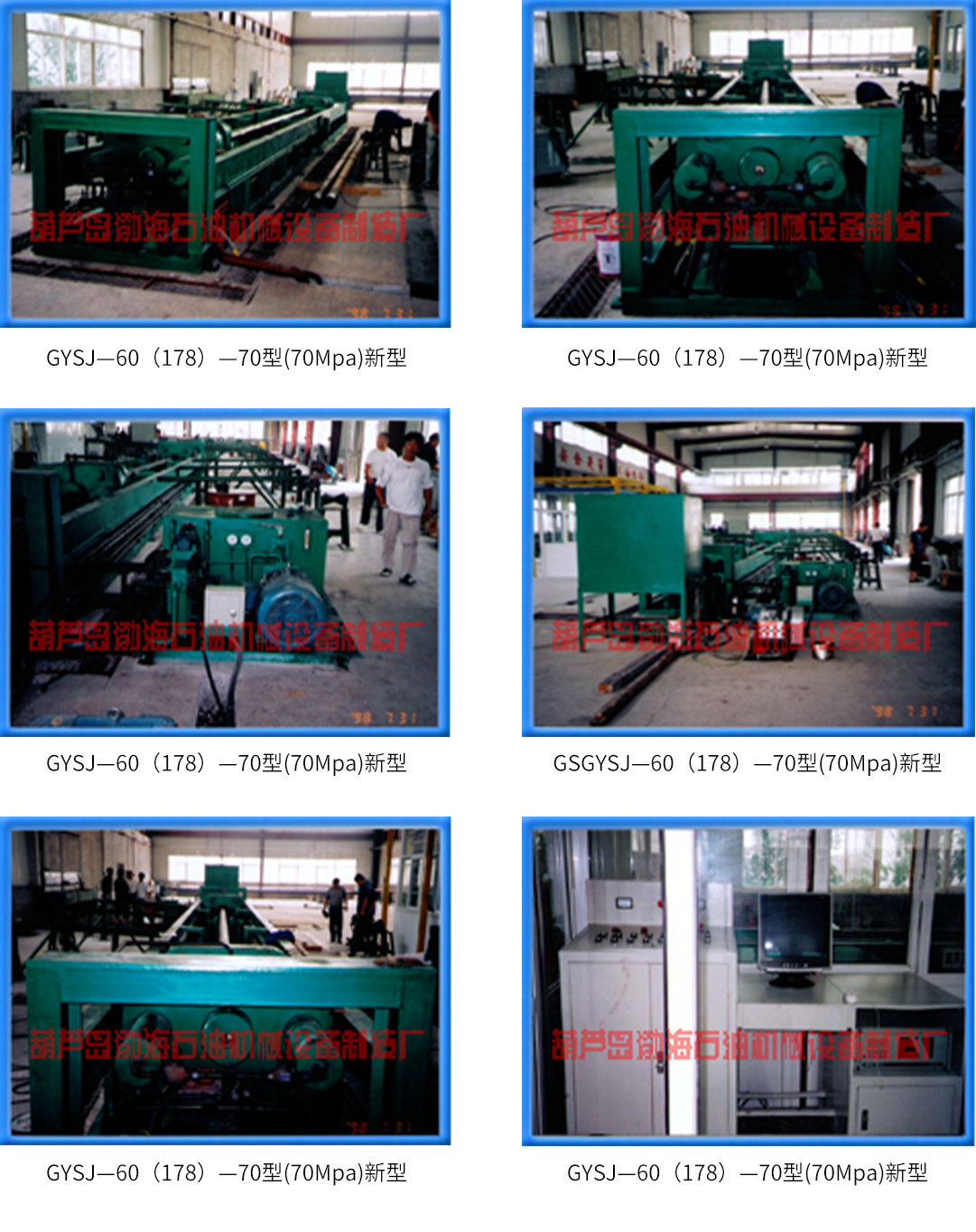 GYSJ—60/178—70型試壓機是石油機械行業(yè)中,對油(套)管進行打壓試驗的專用設備,適用于油(套)管出廠及修復后的耐壓(不滲漏)檢測。該產品由電控操作,是一種機電液壓一體化的設備。